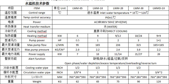 工業水加熱器性能卓越,配置精良,配件均采用國際知名品牌產品,施耐德電氣組件,故障率極低,而且使用壽命長。臺灣元新泵浦,耐高溫流量大,運轉順暢,噪音極低,小型水加熱器歐姆龍溫控器,根據客戶的工藝特別定制,內置控溫模塊,實行PID控制,數值出廠前由小型水加熱器廠家專業技術人員設置,可以放心使用;進口微電腦PC板,自動化程序控制,實現一鍵操作之效果.小型水加熱器多點溫度控制系統可定制,根據用戶的需求,可選購RS485通訊功能,實現集中控制.水溫機設開機自動排氣功能,管路一體成型,配置防爆裝置,安全性能高.小型水加熱器控溫精確,精準的將溫差控制在±1℃以內,小型水加熱器售后服務完善,歡迎廣大新老客戶選購.